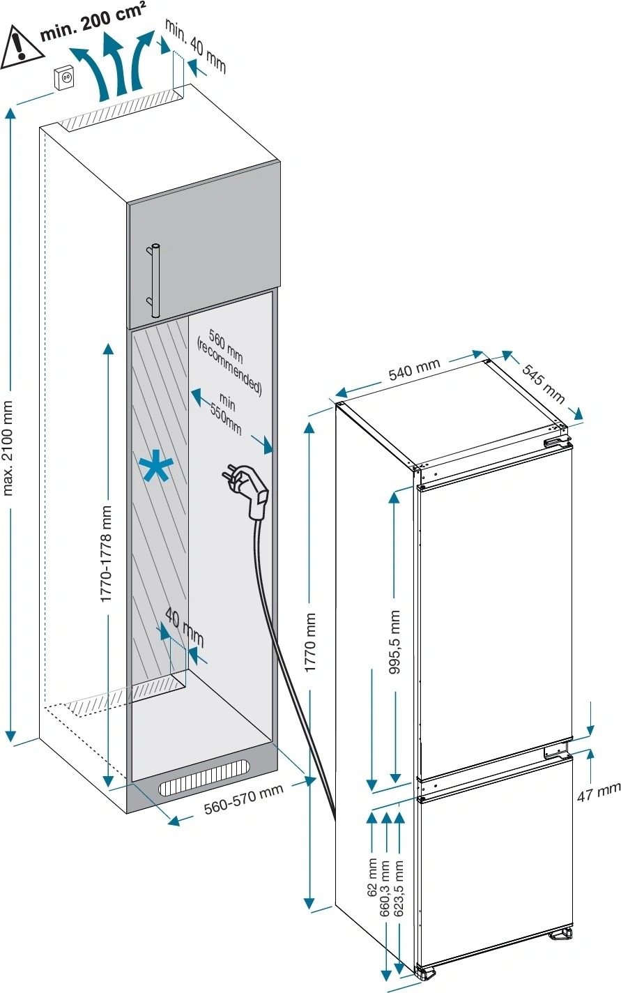 Hyundai HBR 1786 - схема встраивания к холодильнику на разных языках на Hausdorf
