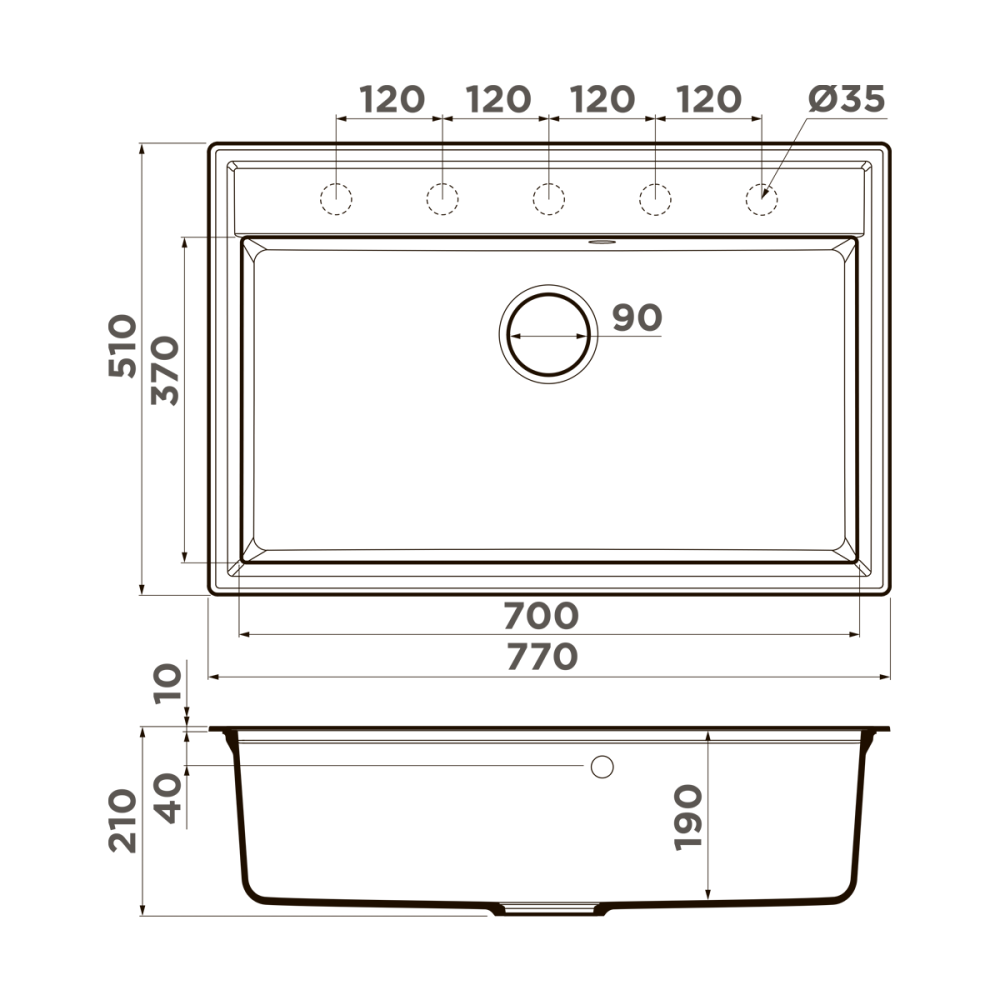 Omoikiri Daisen-77-ES - схема с размерами версия 2 к мойке на разных языках на Hausdorf