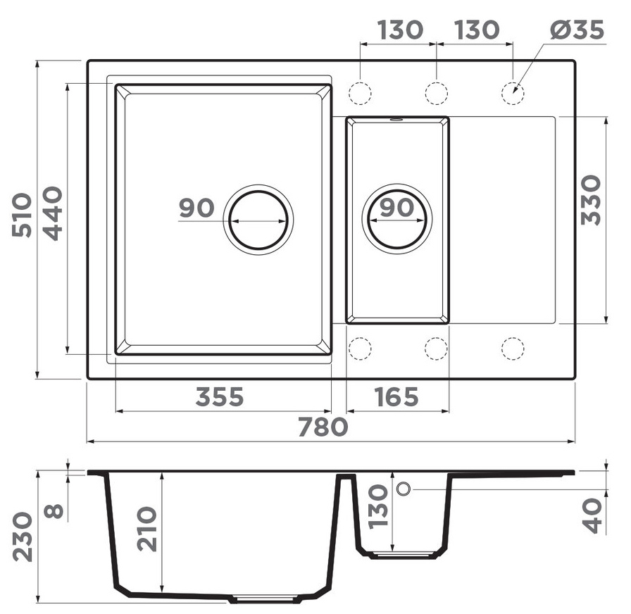 Сохранить файл: Схема с размерами к Omoikiri DAISEN 78-2T WH.JPG, 123.2 Кб