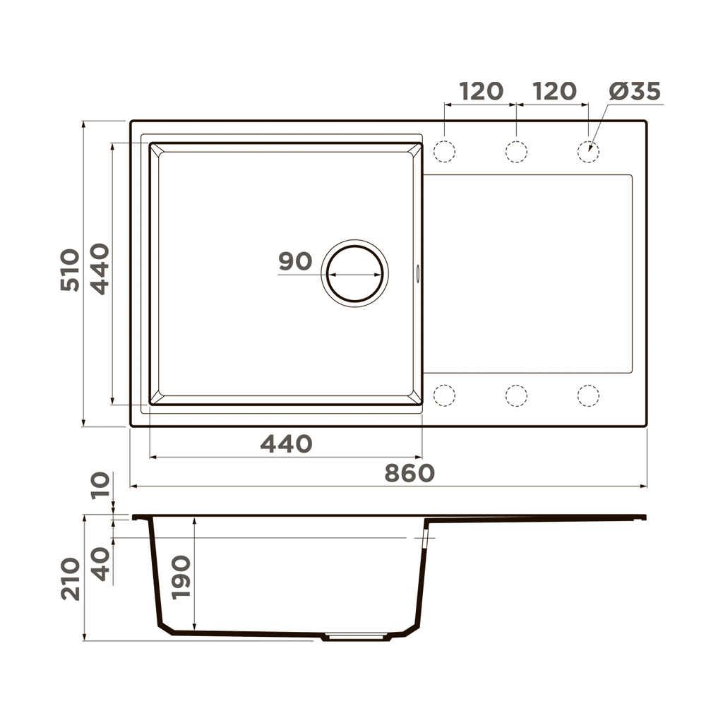 Сохранить файл: Схема с размерами к Omoikiri Daisen-86-SA.PNG, 112.51 Кб