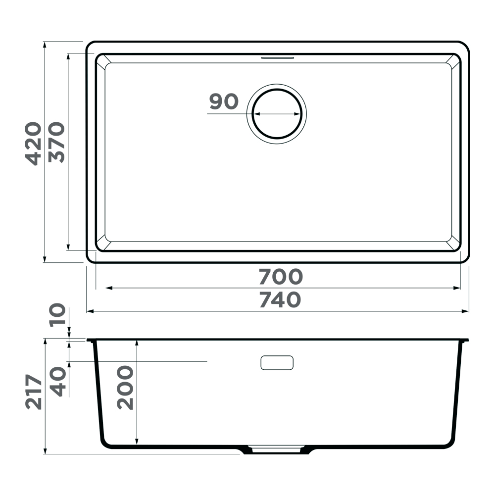 Omoikiri Kata 74-U-PA - схема с размерами версия 2 к мойке на разных языках на Hausdorf