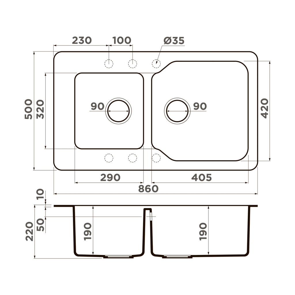 Сохранить файл: Схема с размерами к Omoikiri MARU 86-2 BL.PNG, 148.25 Кб