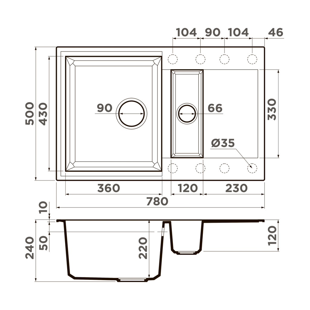 Сохранить файл: Схема с размерами к Omoikiri SAKAIME 78-2 CH.PNG, 174.13 Кб