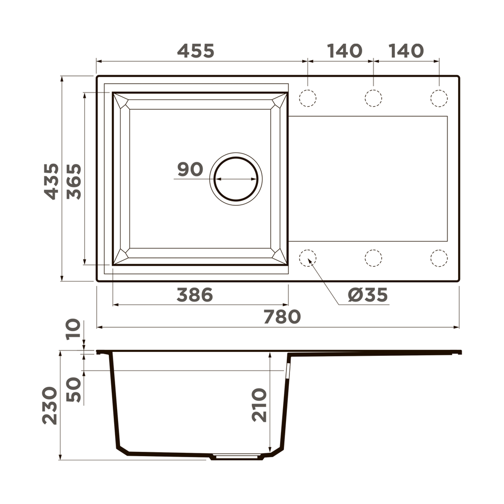 Сохранить файл: Схема с размерами к Omoikiri SAKAIME 78 CH.PNG, 134.84 Кб