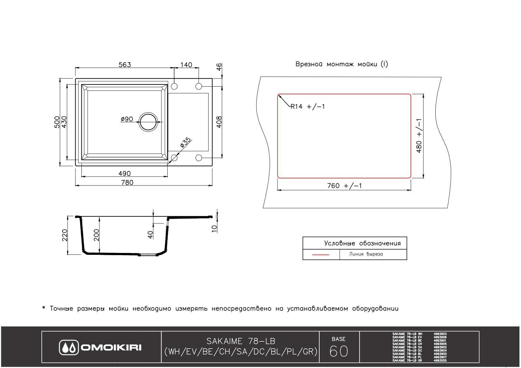 Omoikiri SAKAIME 78-LB-ES - схема с размерами версия 3 к мойке на разных языках на Hausdorf