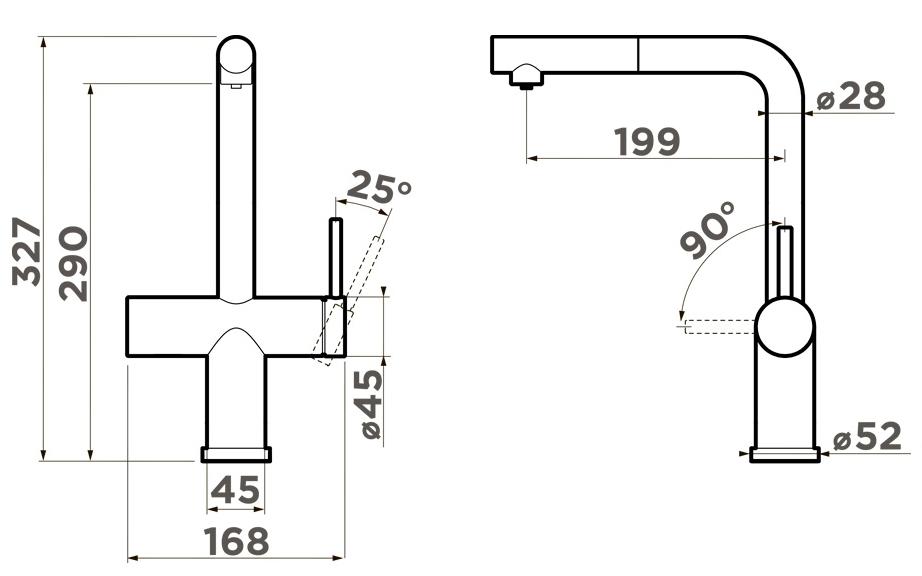 Omoikiri KARATSU-S BN - схема с размерами к смесителю на разных языках на Hausdorf