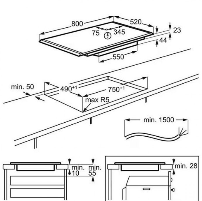 AEG NII84B10AB - схема с размерами к варочной панели на разных языках на Hausdorf