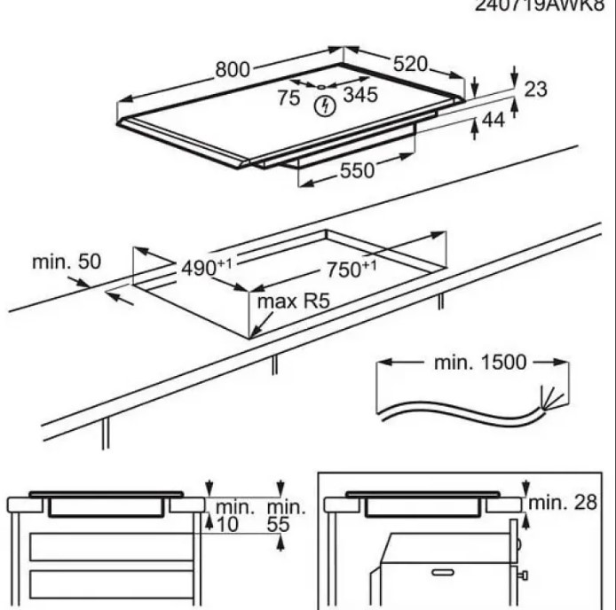AEG NII84B30AB - схема с размерами к варочной панели на разных языках на Hausdorf