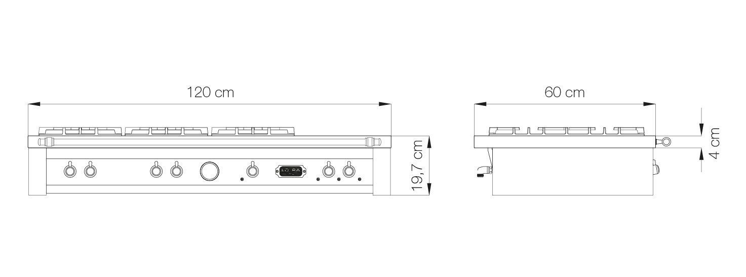 Lofra TRNM126/5C BRASS - схема с размерами к варочной панели на разных языках на Hausdorf