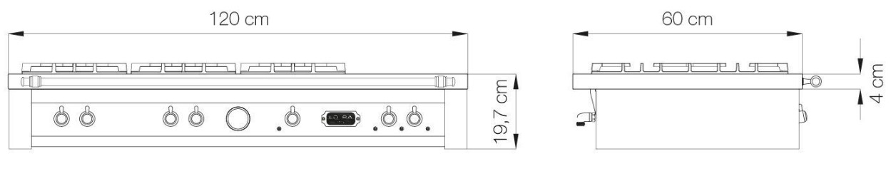 Lofra TRS126/5C BRASS - схема с размерами к варочной панели на разных языках на Hausdorf