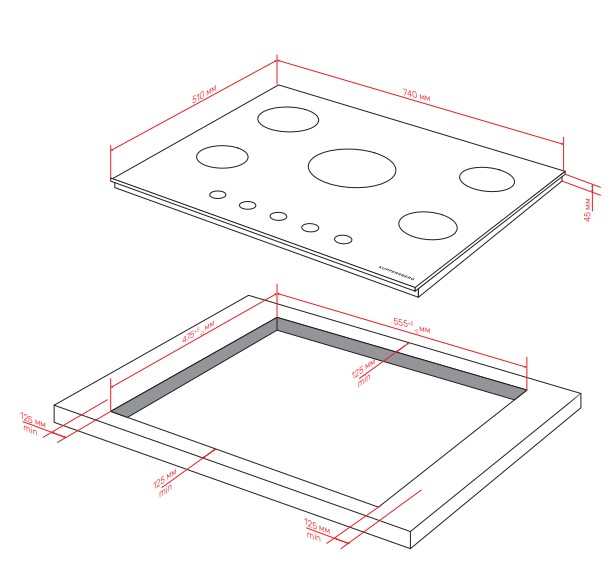 Kuppersberg FG 76 B - схема с размерами версия 2 к варочной панели на разных языках на Hausdorf
