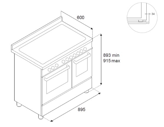 Bertazzoni HER95I2EAVT2 - схема с размерами версия 3 к варочному центру на разных языках на Hausdorf