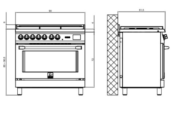 Lofra ASG96WGVGT/AEO - схема с размерами к варочному центру на разных языках на Hausdorf