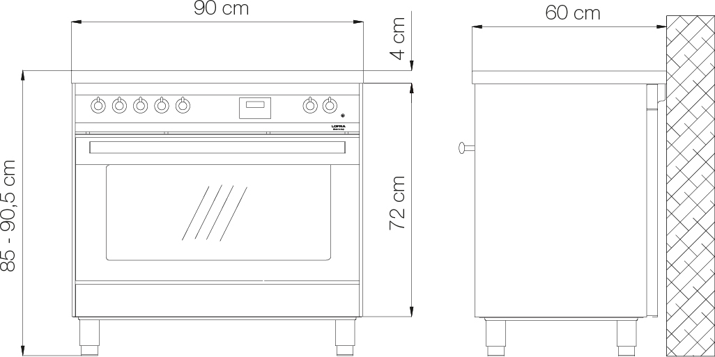Lofra PBIG96WMFT/5I - габаритный чертеж к варочному центру на разных языках на Hausdorf