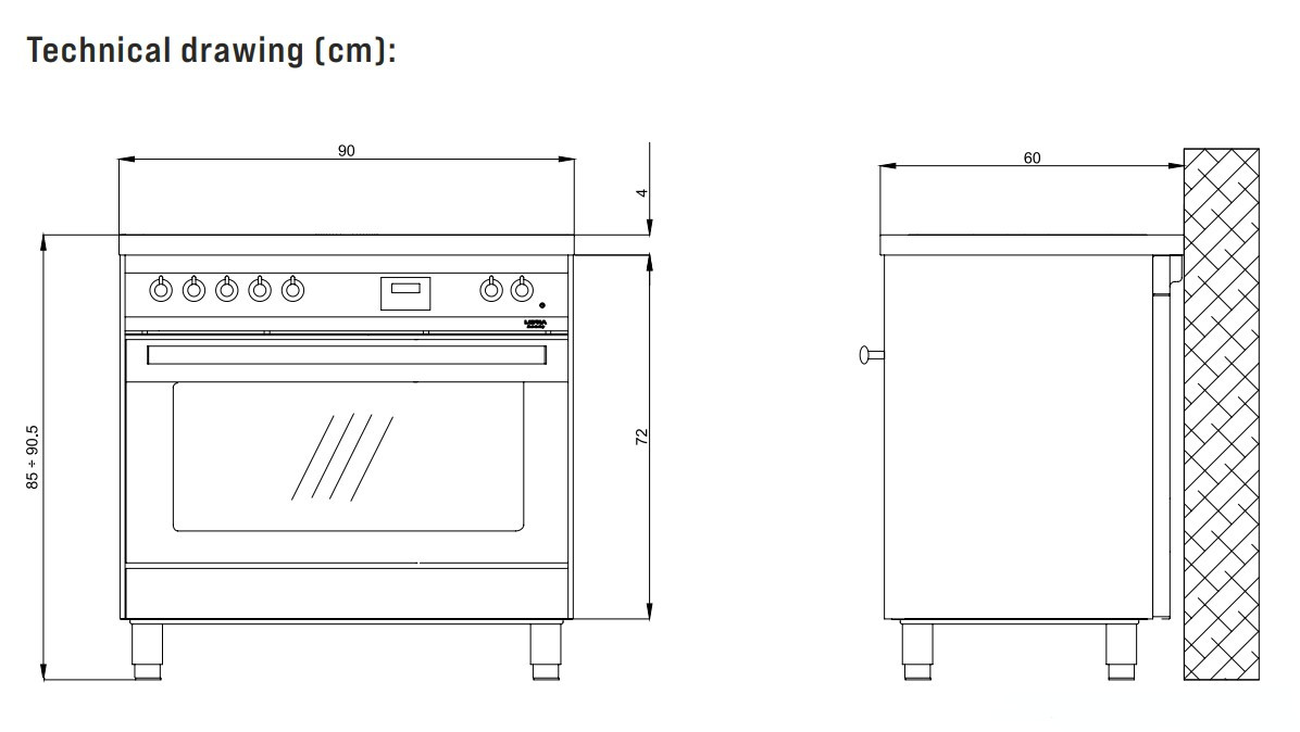 Lofra PNMG96WMFT/5I - технический чертеж к варочному центру на разных языках на Hausdorf