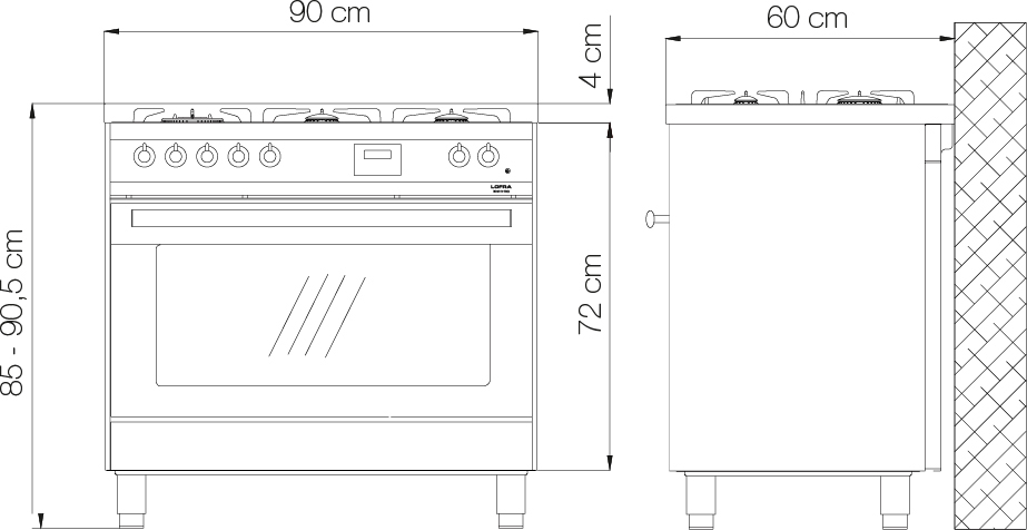 Lofra PRG96WMFT/AEO - габаритный чертеж к варочному центру на разных языках на Hausdorf