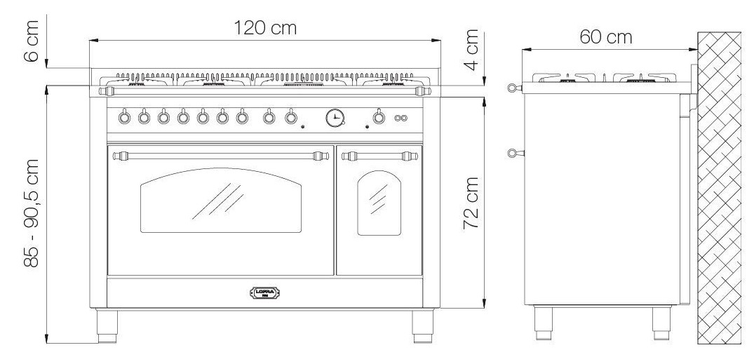 Lofra RRD126MFT+E/2AEO BRONZE - схема с размерами к варочному центру на разных языках на Hausdorf