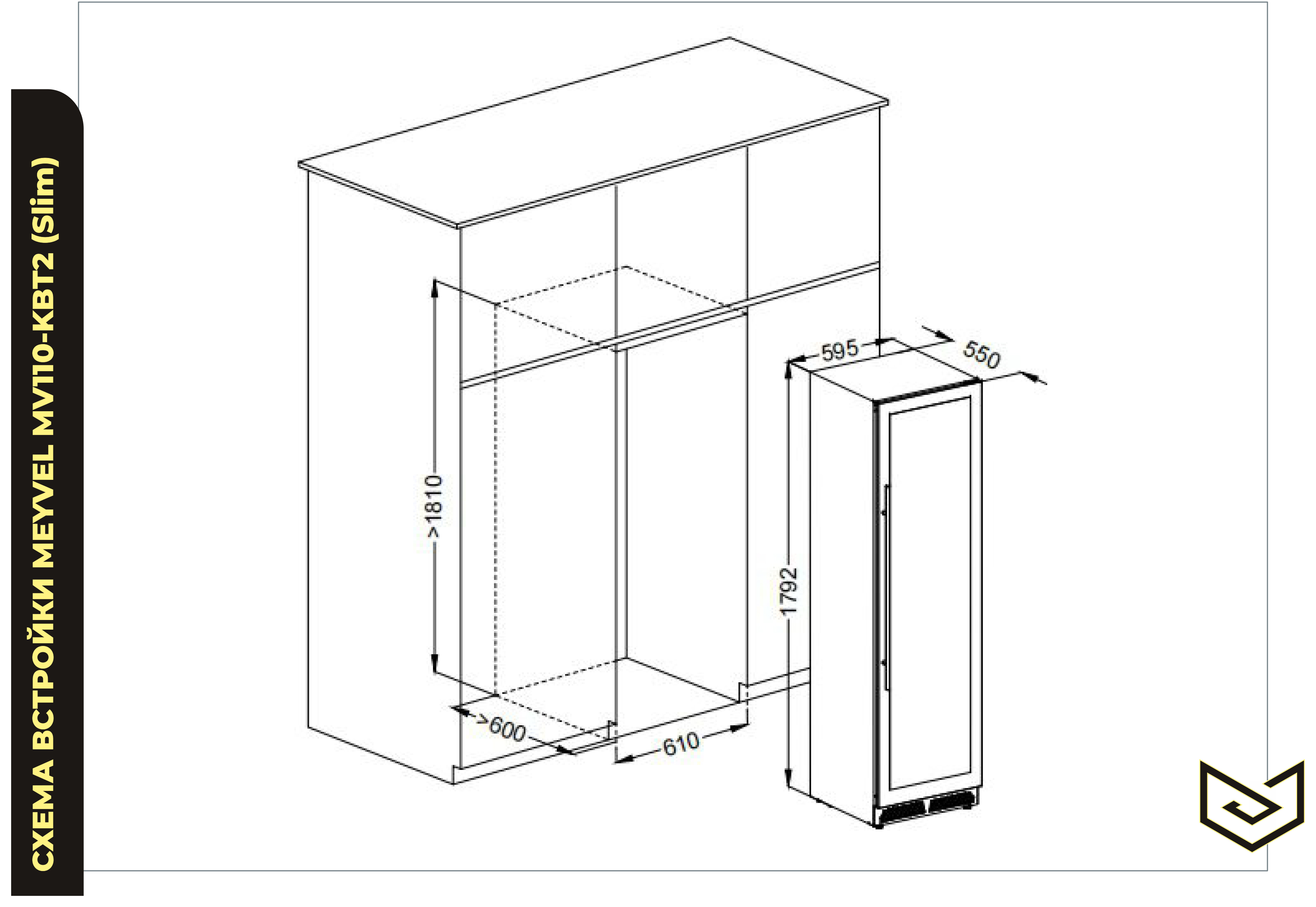 Meyvel MV110-KST2 Slim - схема встраивания к винному шкафу на разных языках на Hausdorf