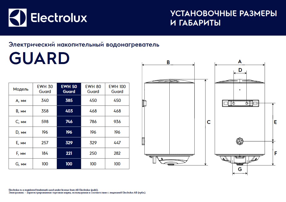 Electrolux EWH 50 Guard - схема с размерами версия 2 к водонагревателю на разных языках на Hausdorf