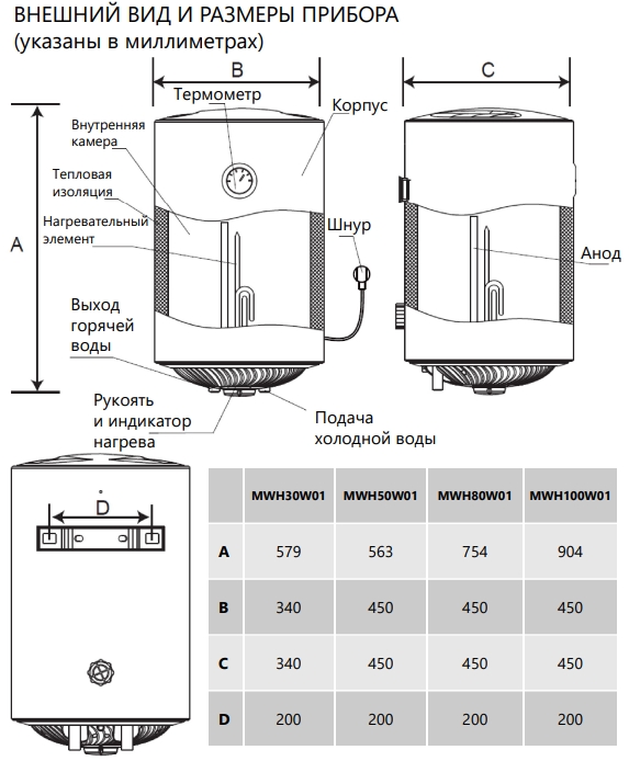 Maunfeld MWH50W01 - схема с размерами версия 2 к водонагревателю на разных языках на Hausdorf