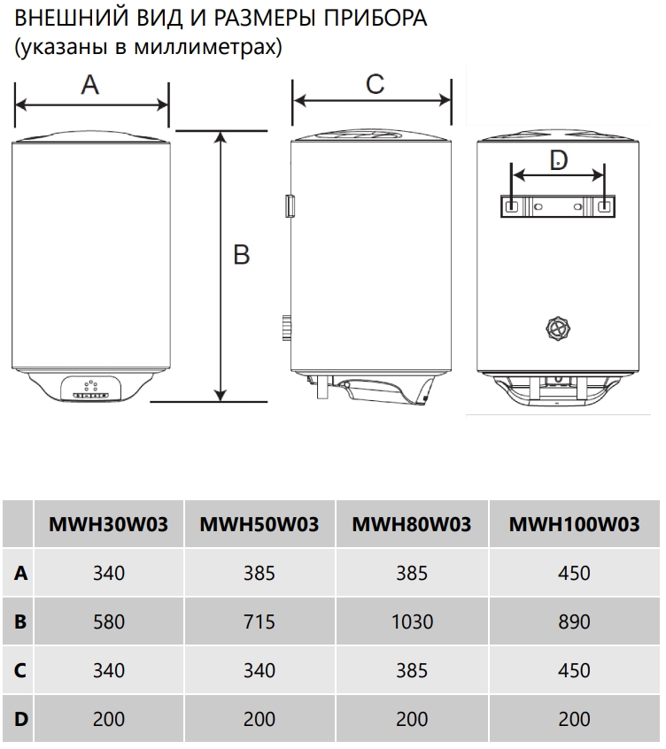 Maunfeld MWH80W03 - схема с размерами версия 2 к водонагревателю на разных языках на Hausdorf