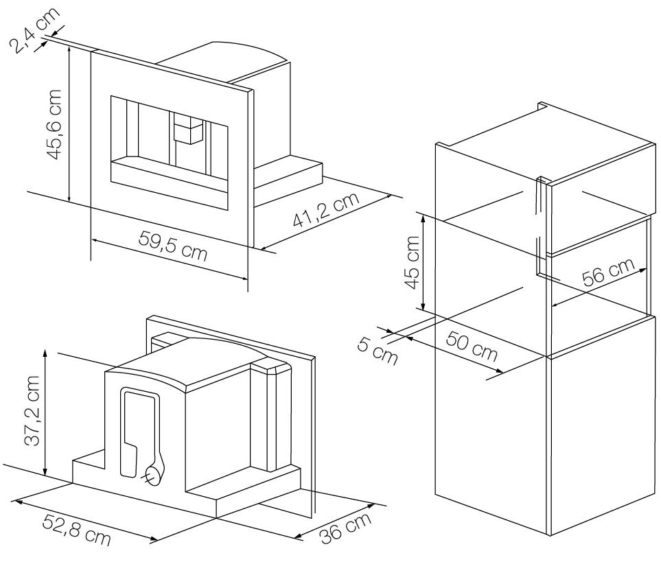 Lofra YBRNM66T BRONZE - схема встраивания с размерами к кофемашине на разных языках на Hausdorf