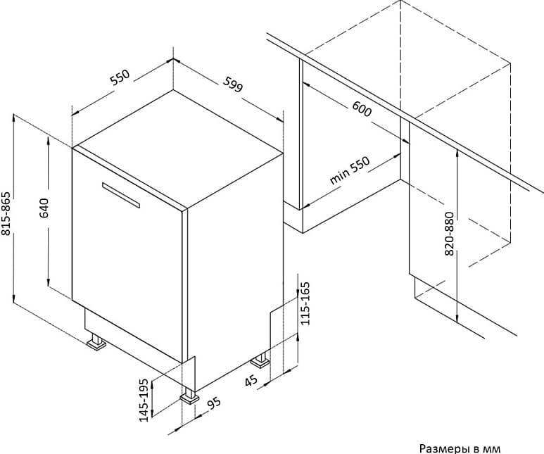 Korting KDI 60877 - схема встраивания к посудомоечной машине на разных языках на Hausdorf