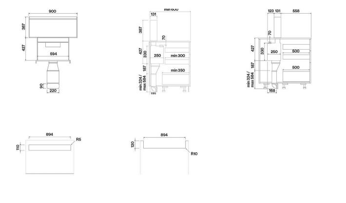 Falmec BROOKLYN - схема встраивания с размерами к вытяжке на разных языках на Hausdorf