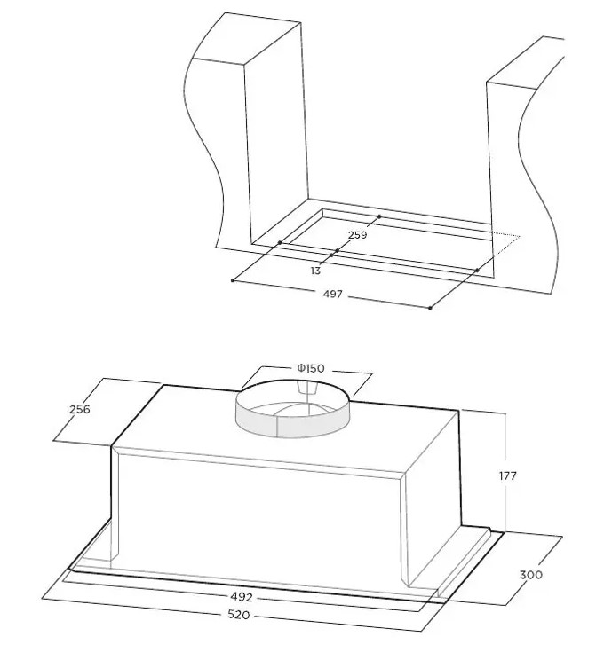 Midea MH60I301X - схема с размерами версия 2 к вытяжке на разных языках на Hausdorf