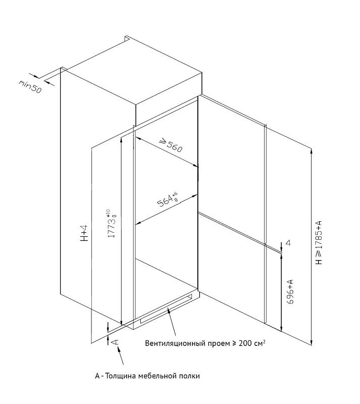 Korting KSI 17633 CLF - схема с размерами версия 2 к холодильнику на разных языках на Hausdorf
