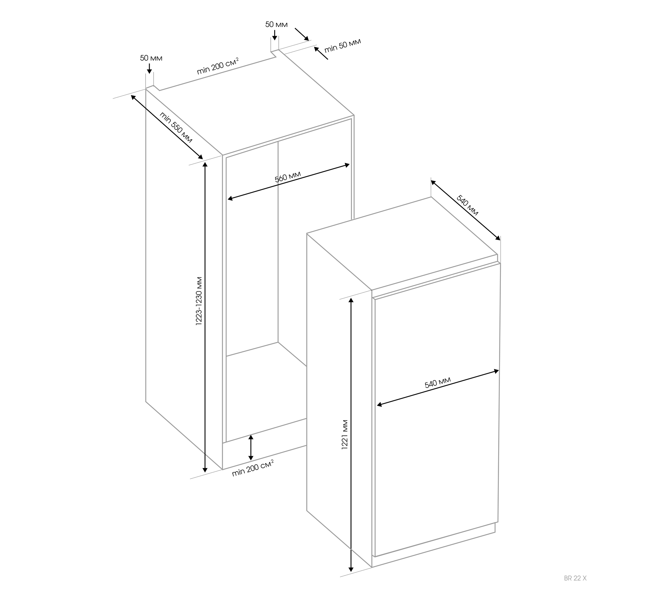 Zigmund Shtain BR 22 X - схема с размерами версия 2 к холодильнику на разных языках на Hausdorf