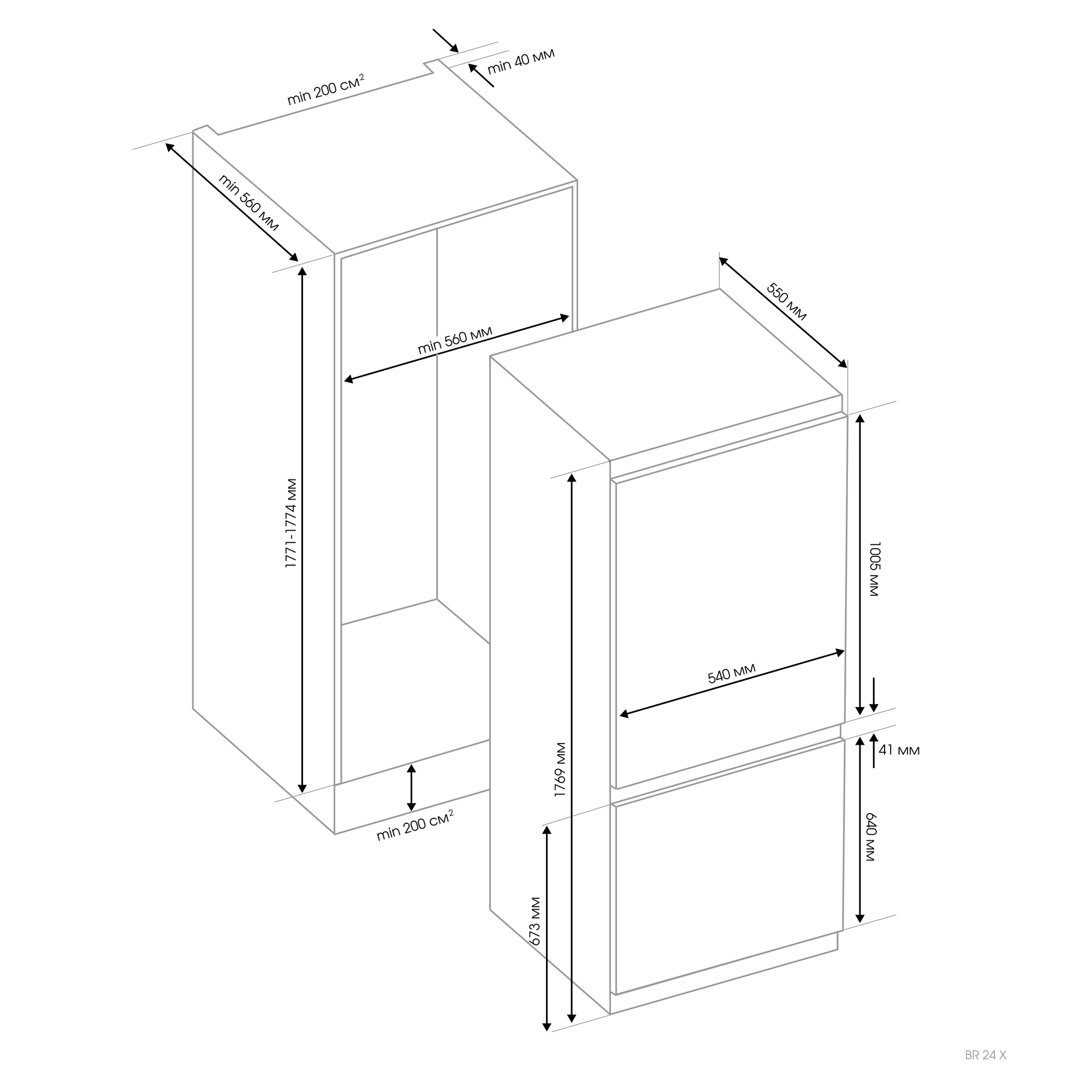 Zigmund Shtain BR 24 X - схема с размерами версия 2 к холодильнику на разных языках на Hausdorf