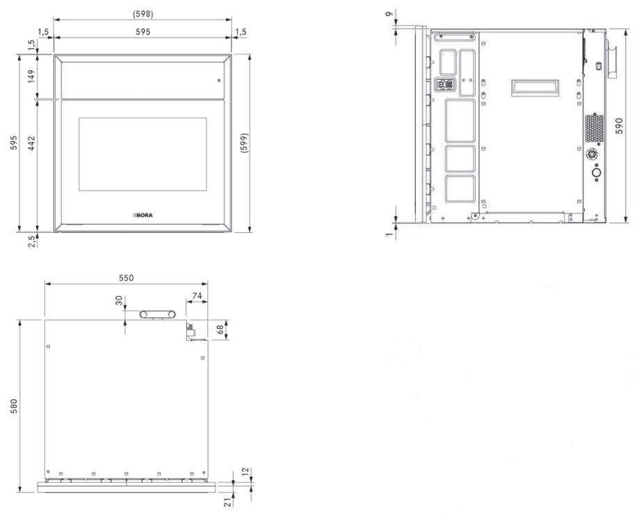 BORA XBO - схема встраивания с размерами к пароварке на разных языках на Hausdorf