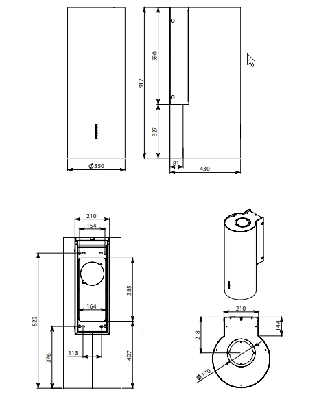 Falmec POLAR EVO X - схема с размерами версия 2 к вытяжке на разных языках на Hausdorf