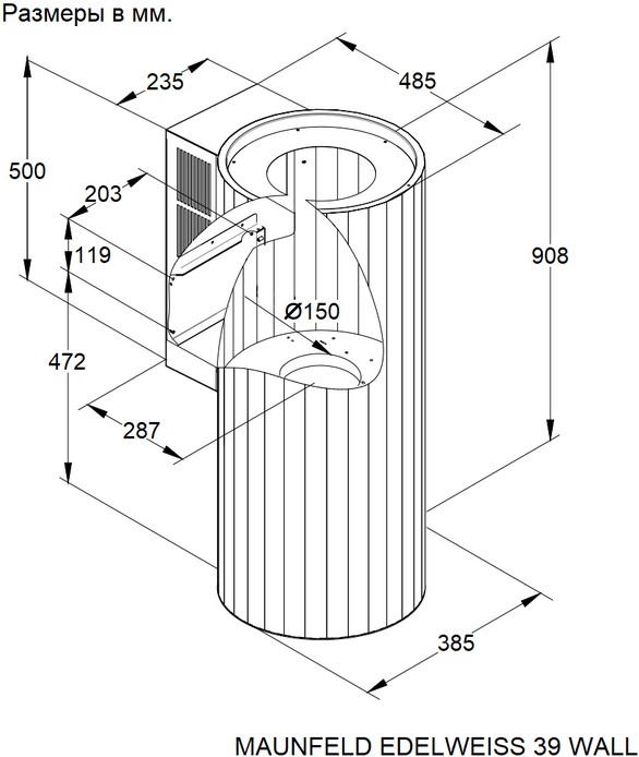 Maunfeld EDELWEISS 39 WALL White - схема с размерами версия 2 к вытяжке на разных языках на Hausdorf
