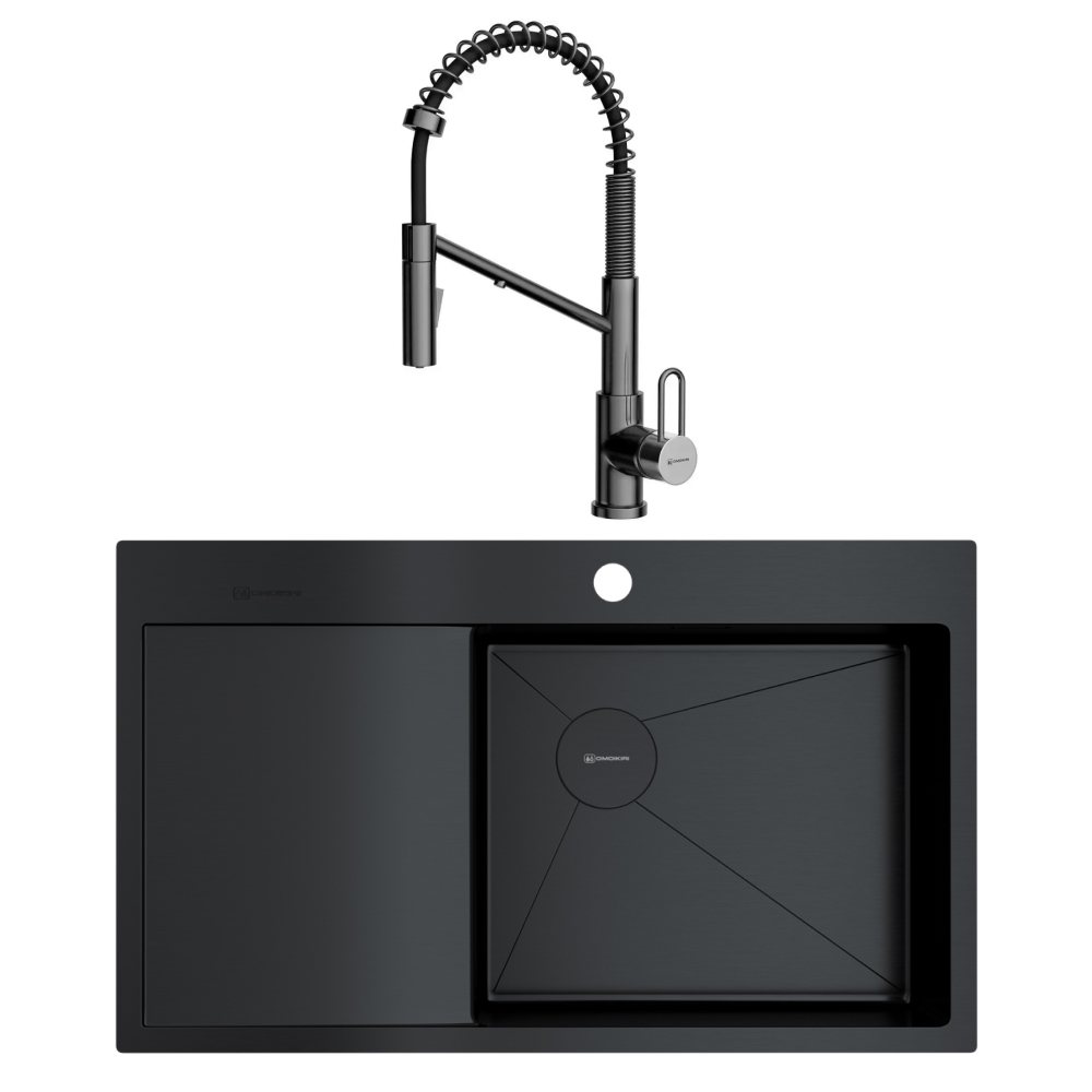 Комплект Omoikiri (мойка AKISAME 86 SIDE GB-R + смеситель MIKAWA 2 PLUS-SB GB) в Екатеринбурге